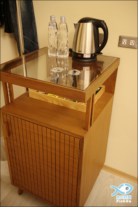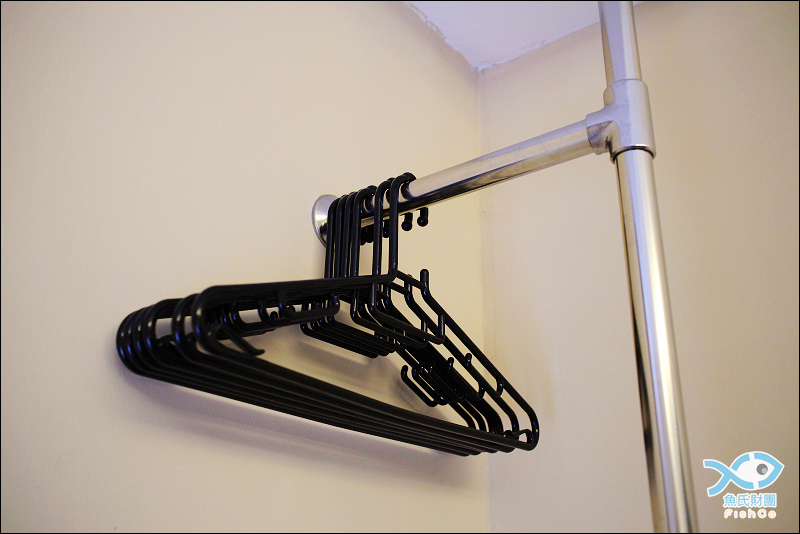▲由於空間因素佳適都沒有提供衣櫥,改以開放式的架子來提供賓客吊掛衣物